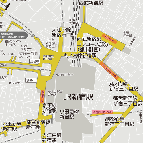 副都心線・丸ノ内線下車の方は新宿線(新宿三丁目駅)方面へ。